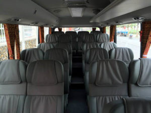 Do đặc điểm là dòng xe chở khách nên nội thất của xe rất tiện nghi và đa dạng. Hệ thống 29 chỗ ngồi rộng rãi, thoáng đãng được lắp đặt 2 bên xe, tạo ra lối đi ở giữa vô cùng tiện lợi. Ghế xe được bọc da hoặc nỉ giúp hành khách ngồi thoải mái hơn. Lớp viền xung quanh xe được ốp vân gỗ tạo nên sự sang trọng cho tổng thể xe.